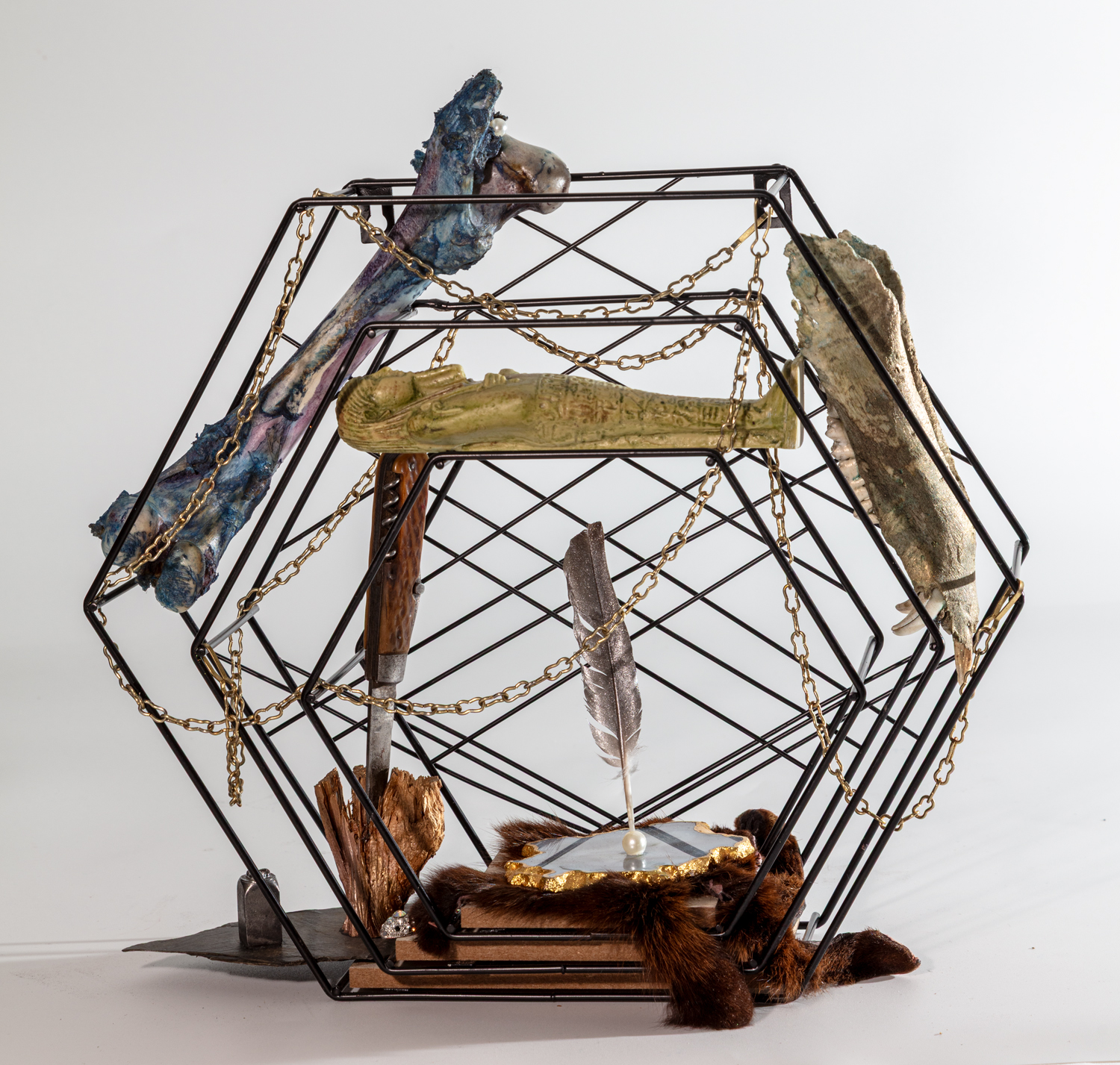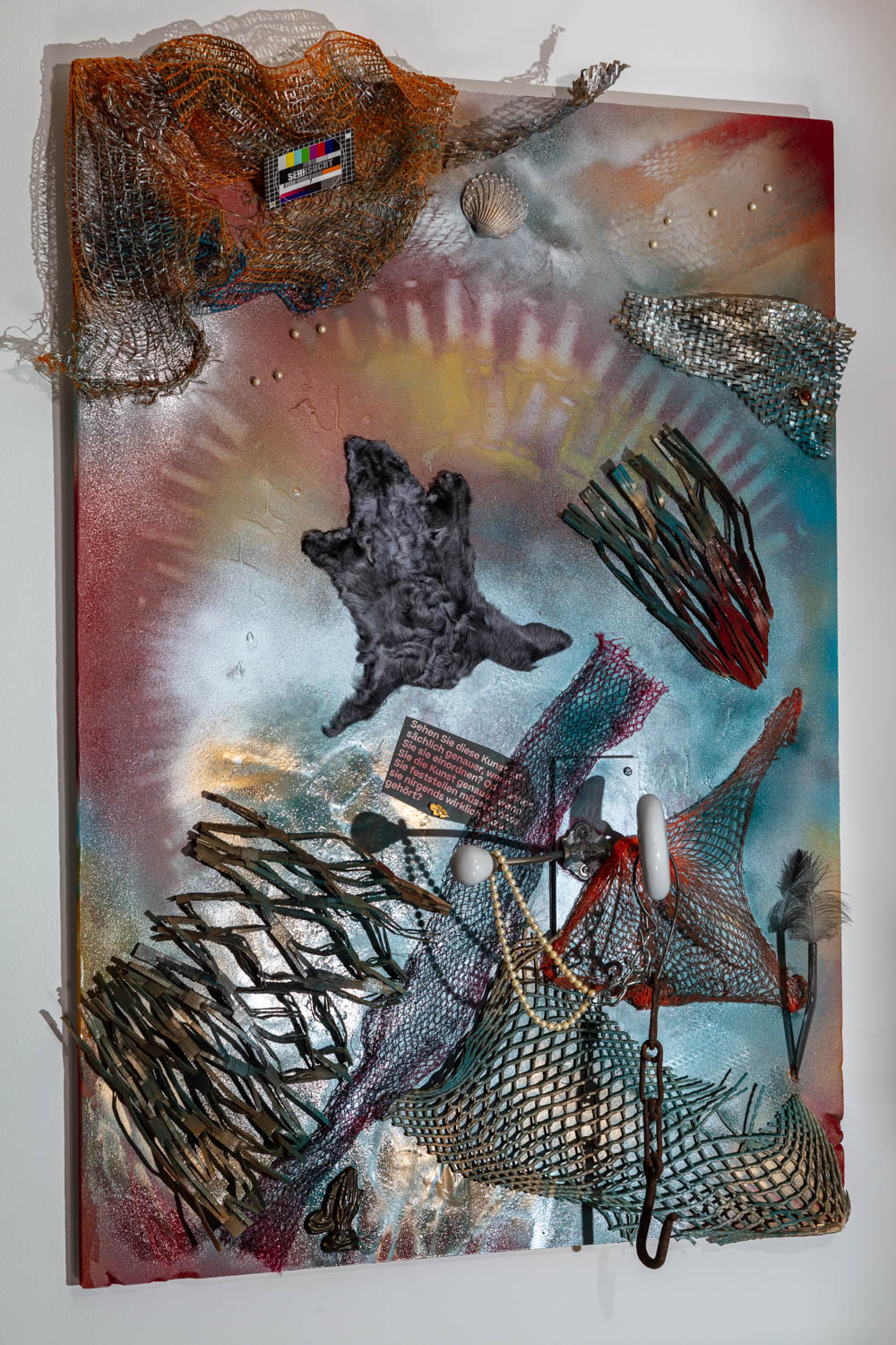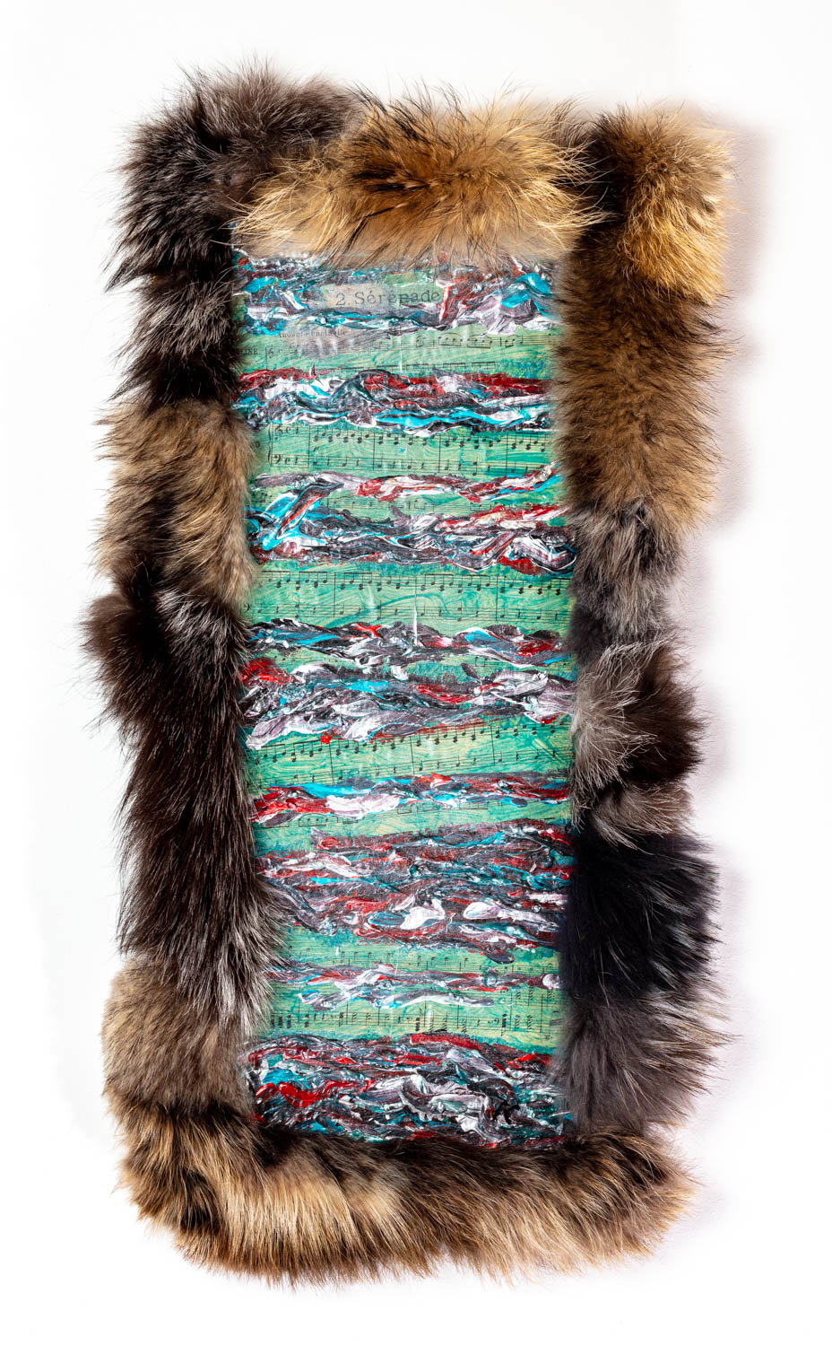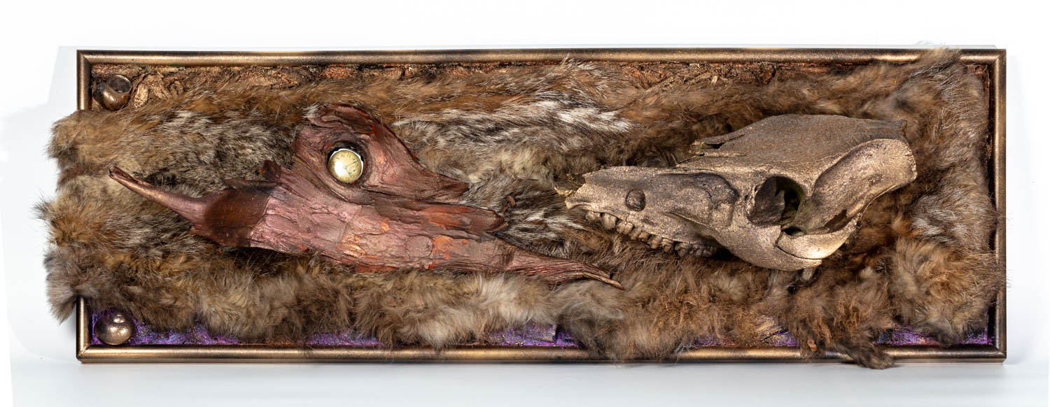 Papier und Acryl auf Pappe und Holz mit Pelz