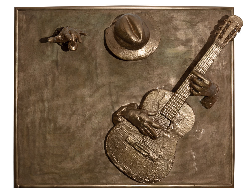 Gips-Installation mit Stoff auf Holzplatte