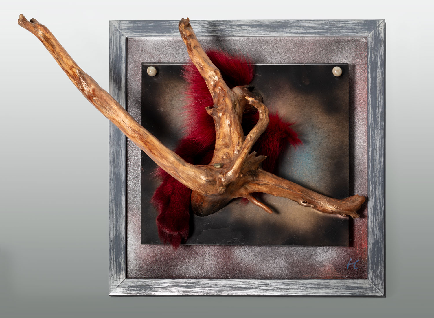 Holz mit Fell und Acryl