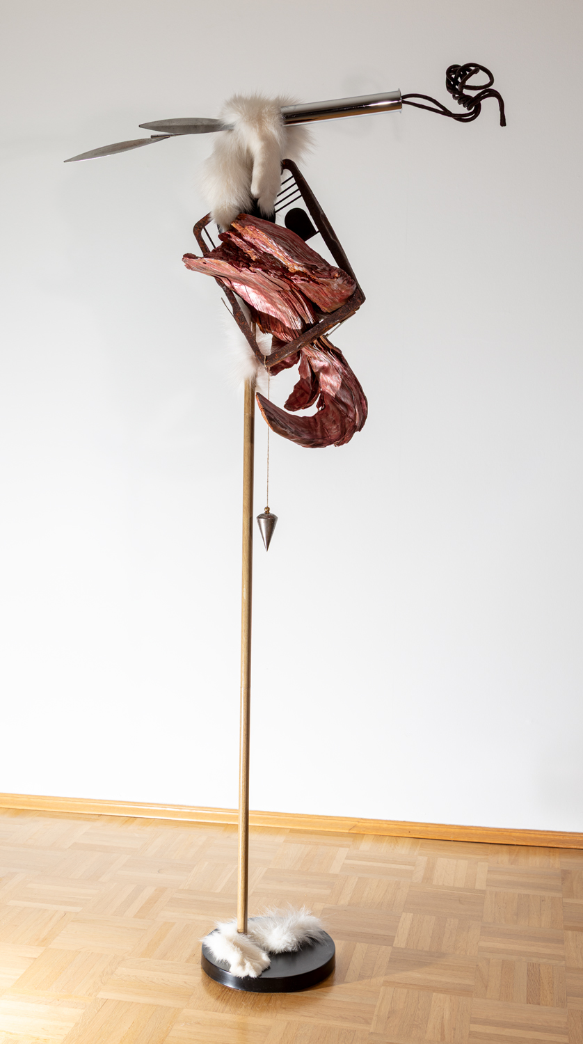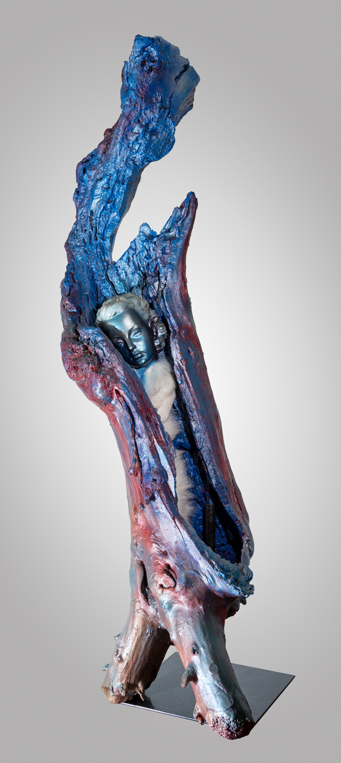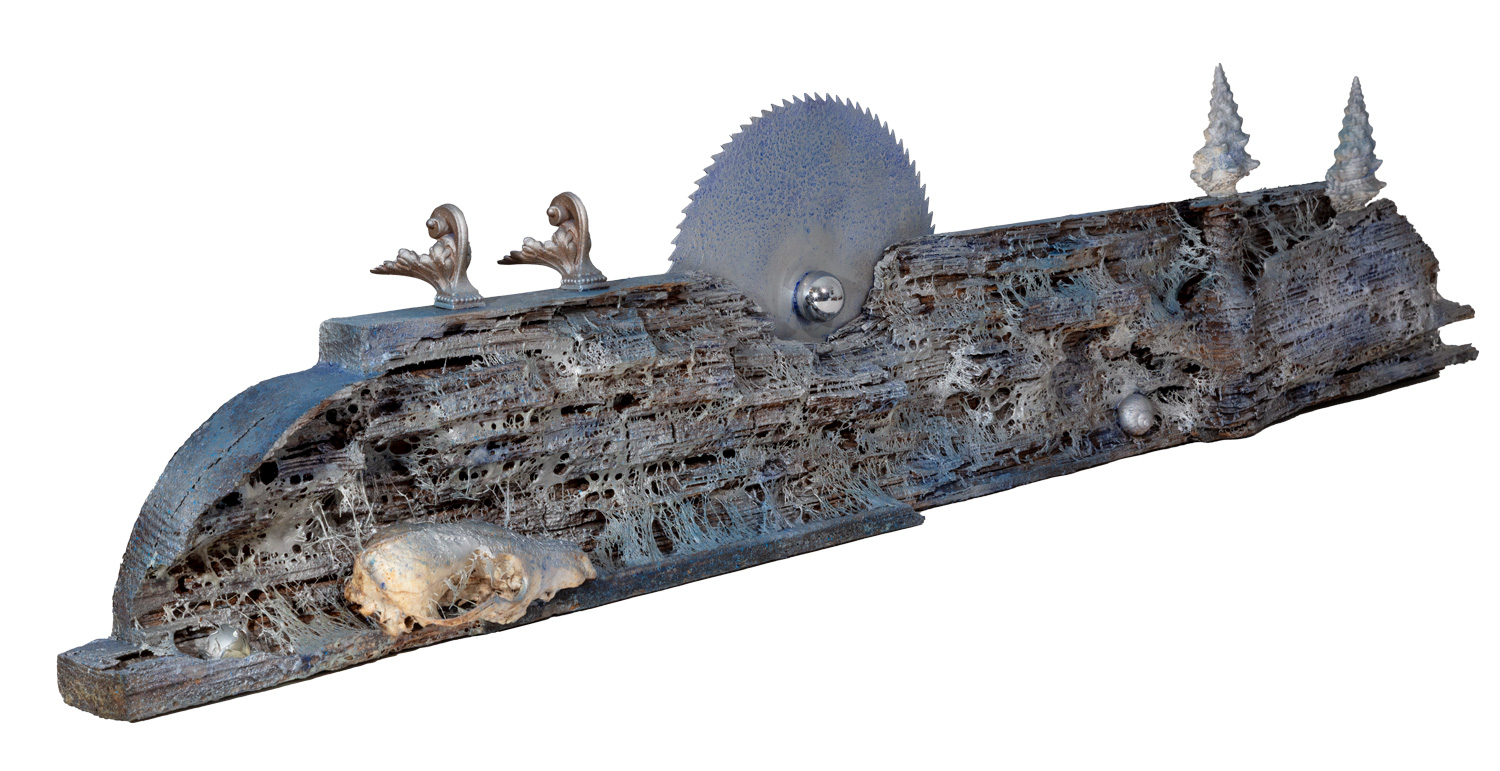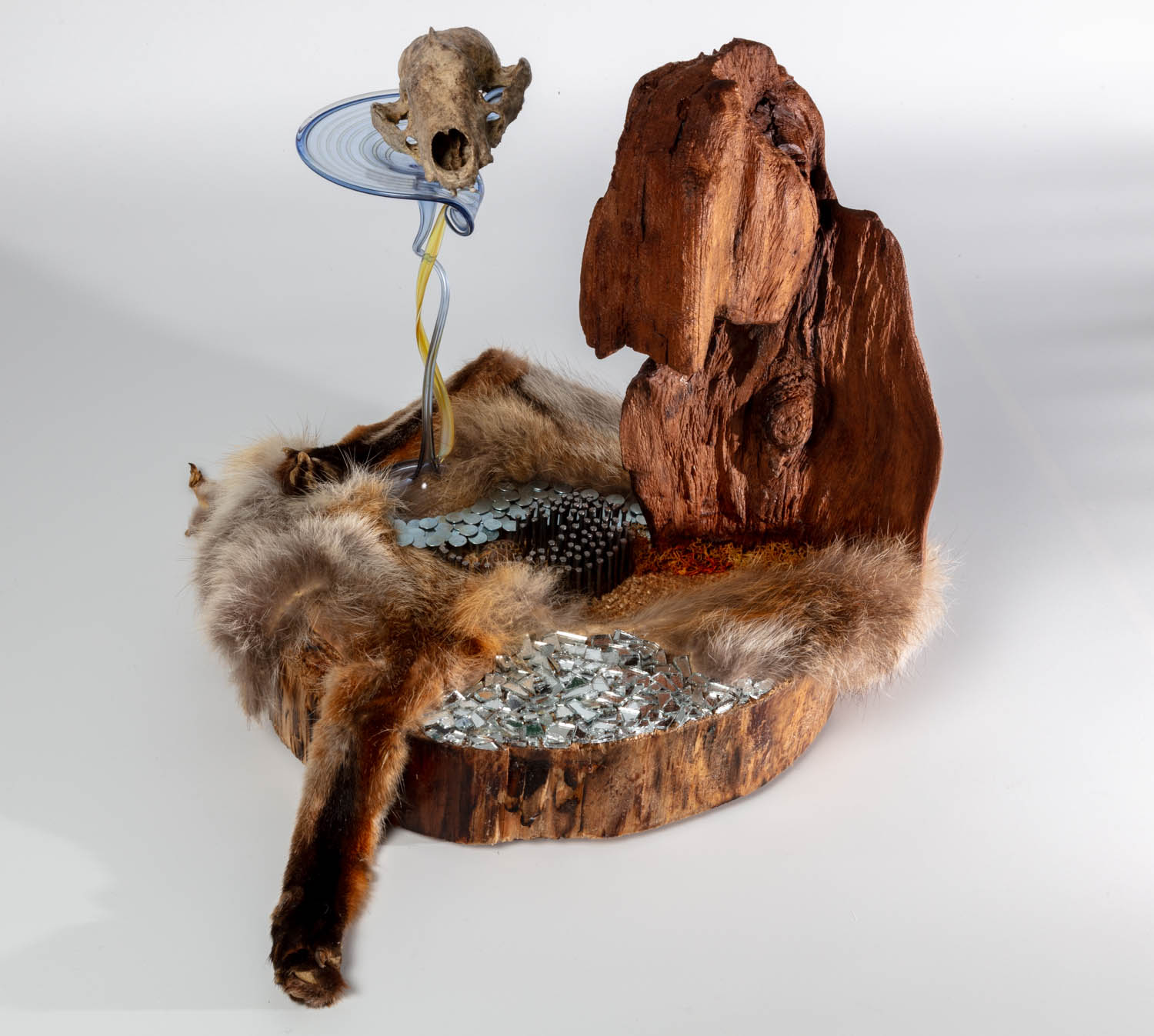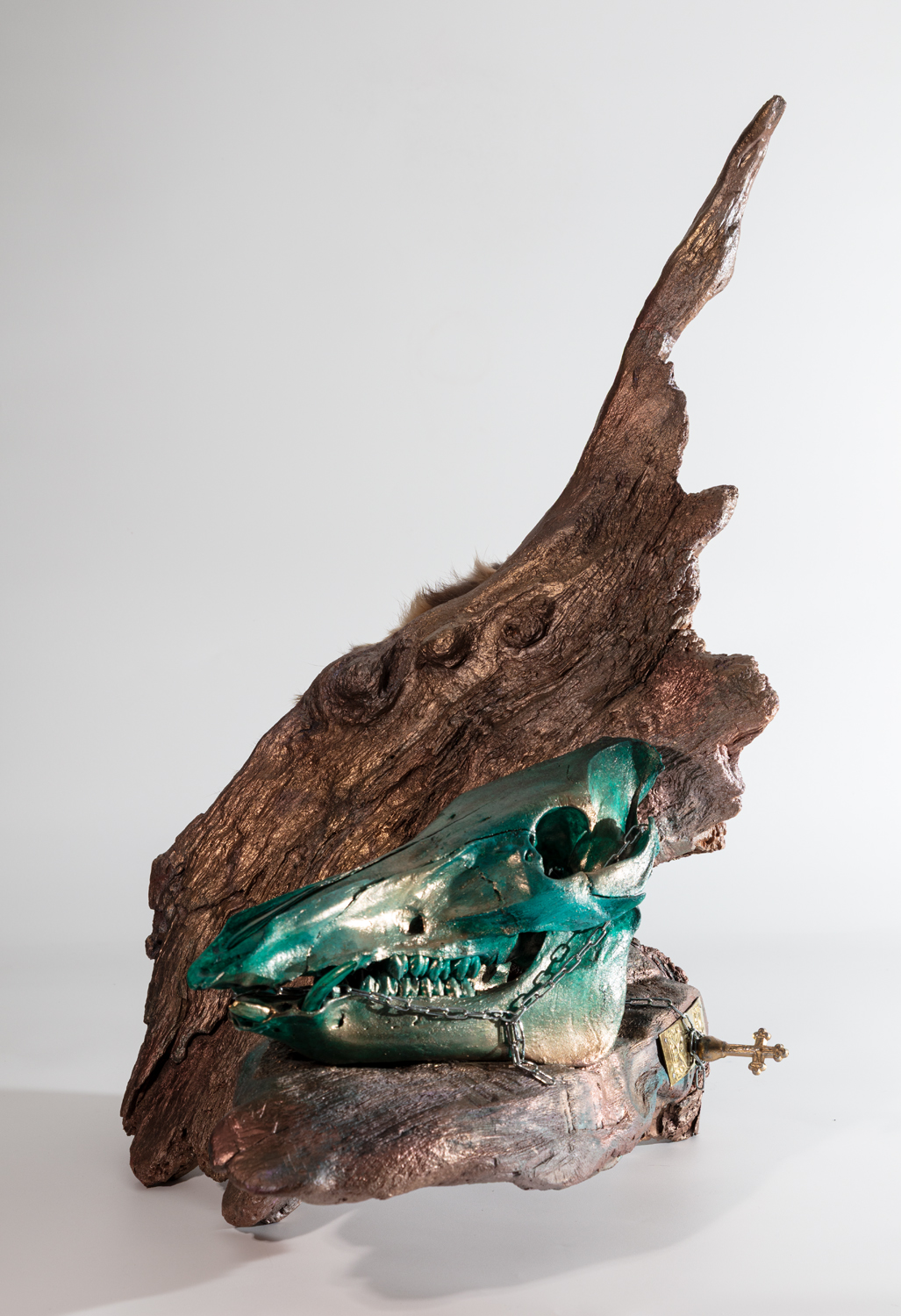 Treibholz mit Schädel und Metall