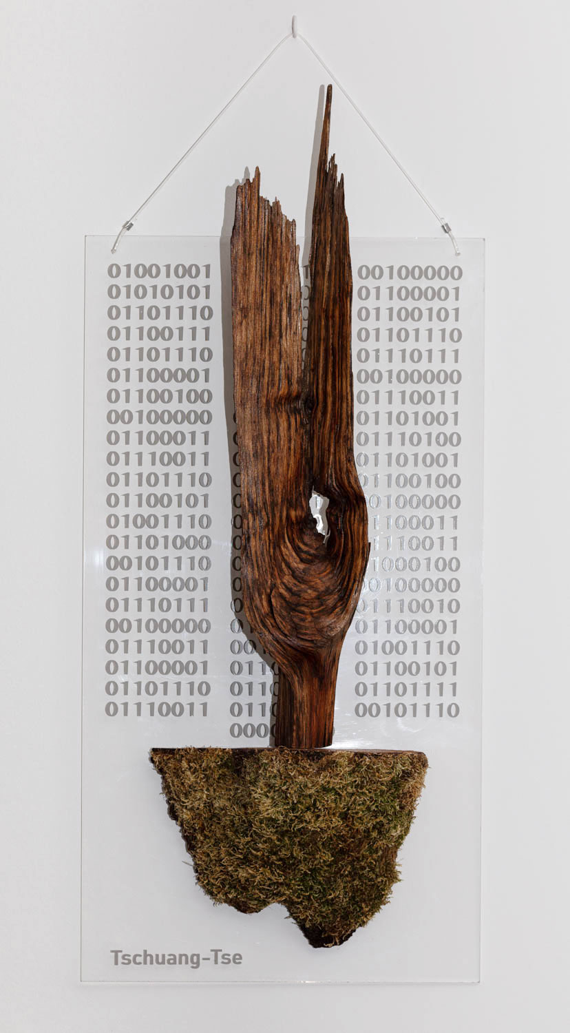 Holz auf Acrylglas mit Binärcode