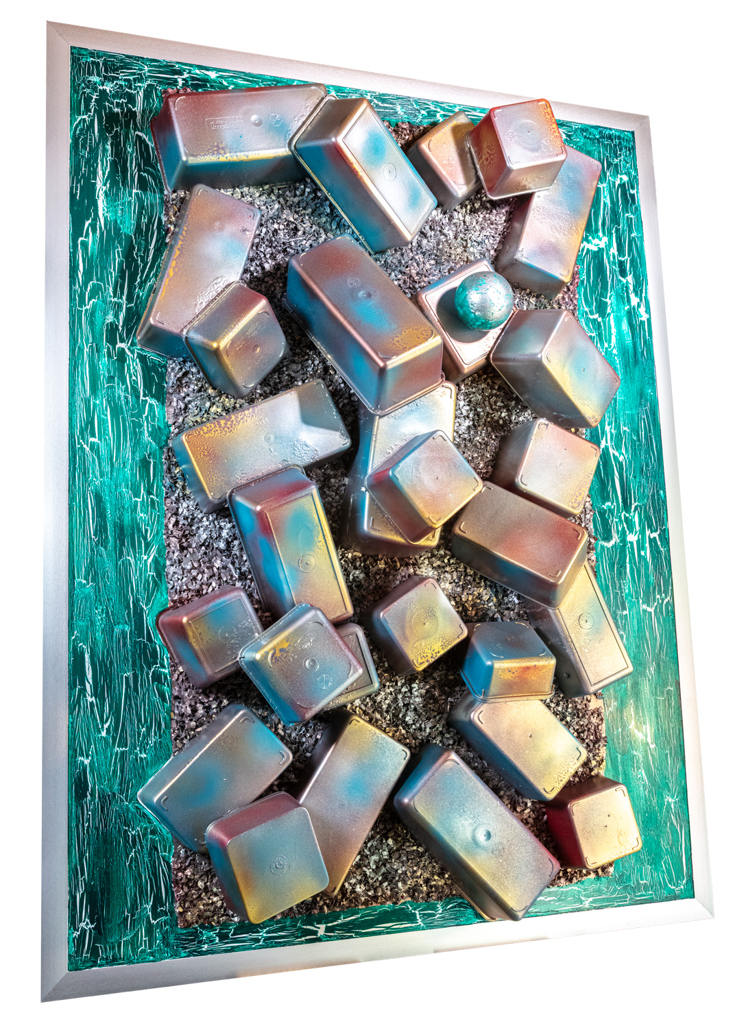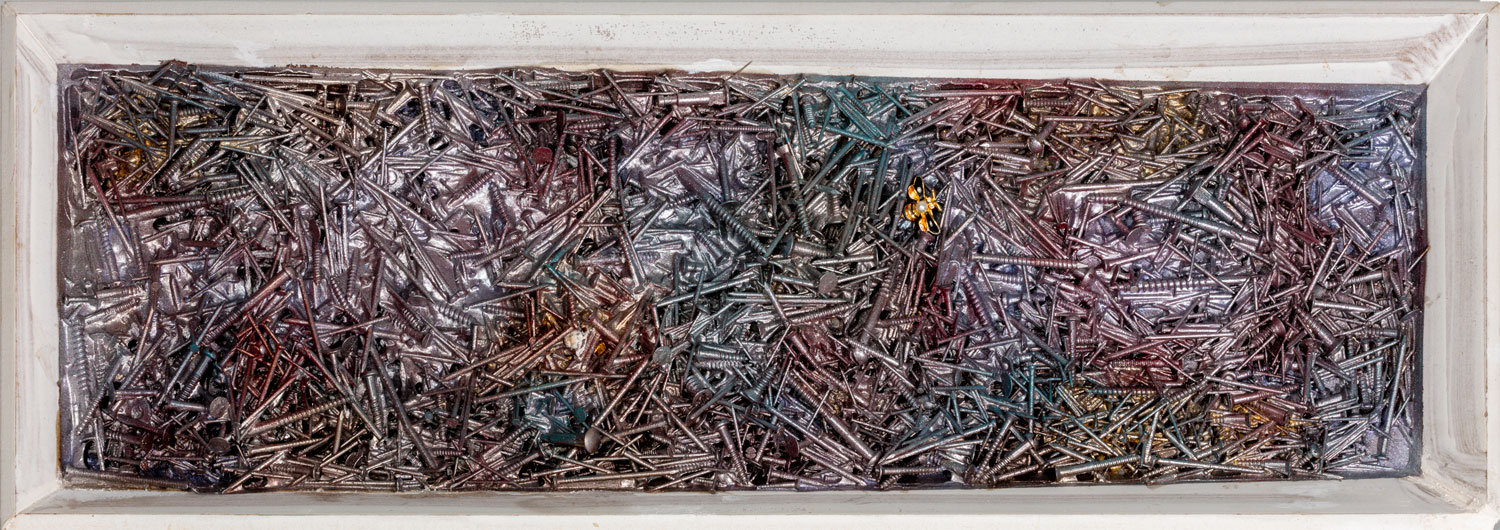 Materialmix, Holz, Acryl mit Pigmentpulver